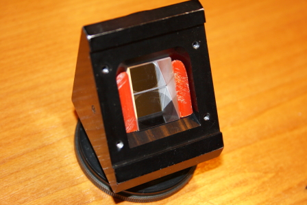metallista valmistetun prisman takalevy irroitettuna. Prisma irtoaa löysyttämällä