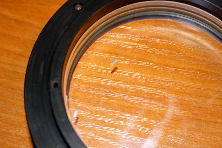 puolelta tuttu "asentaja arska". Linssien saamunen ulos kehikosta osoittautui hiukan hankalaksi, koska toleranssia ei paljoa ollut. Linssin ja metallikehyksen välissä vähemmän kuin piirustuspaperin paksuus. |